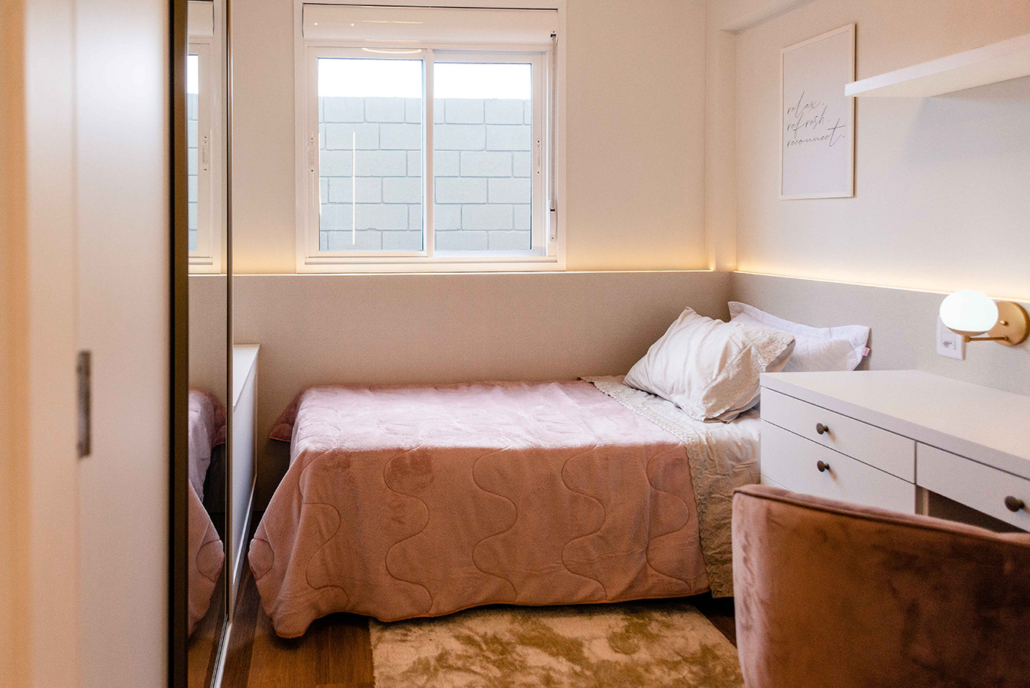 Os apartamentos de 49m², com 2 dormitórios, foram projetados para funcionar de verdade. Ambientes bem distribuídos, janelas com persiana nos dormitórios, espera para split e para aquecedor de água e gás. Tudo pronto para receber sua família.
