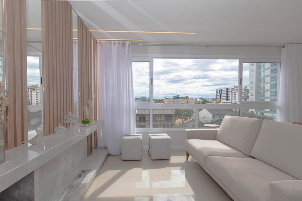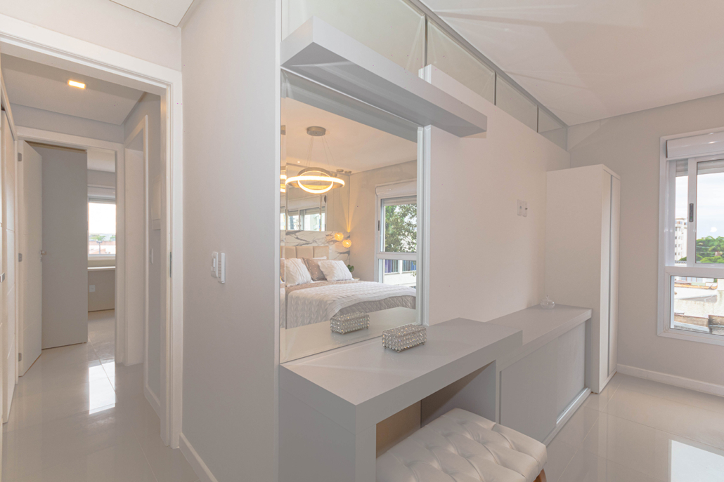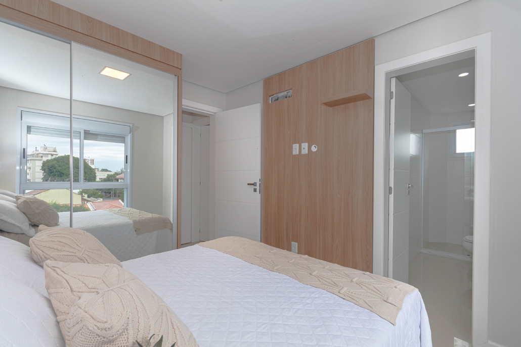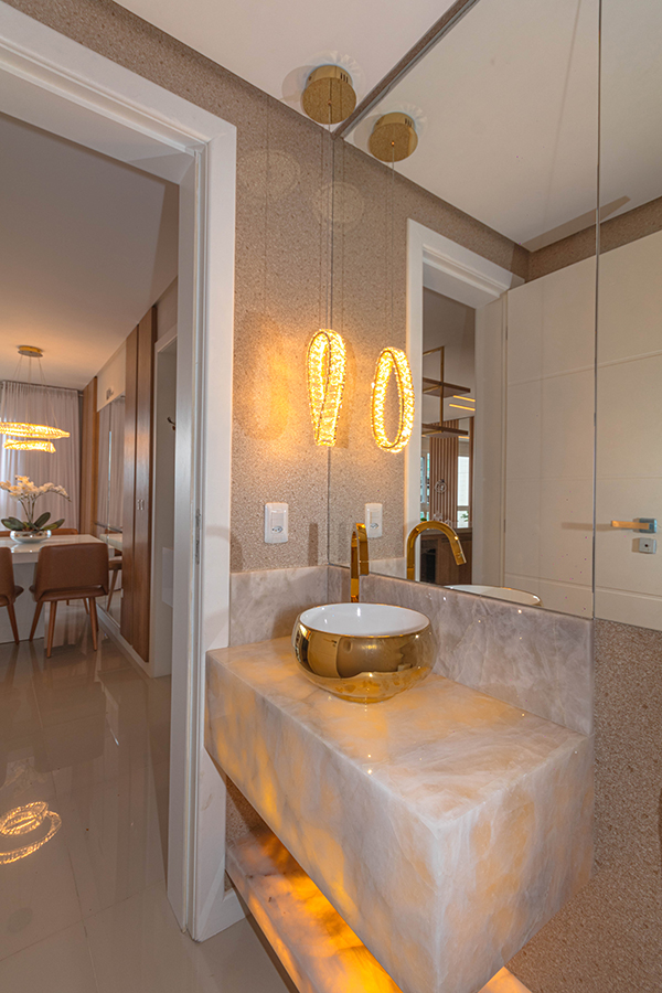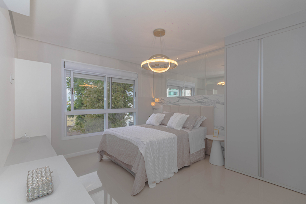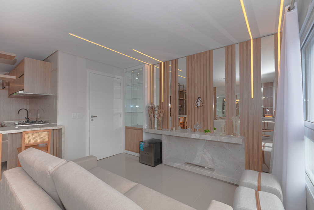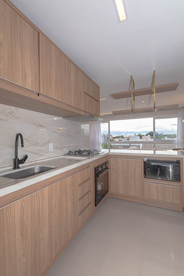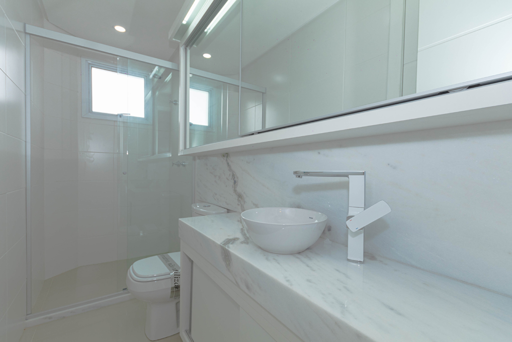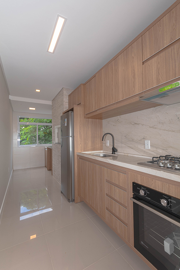 Os apartamentos possuem hidrômetros individuais, acabamento com detalhes em plaquetas, esquadrias externas em alumínio e piso porcelanato em todos os ambientes. Além disso, oferecem espera para água quente e ar-condicionado split nos dormitórios e na sala, reforçando o cuidado com conforto e eficiência em cada detalhe.